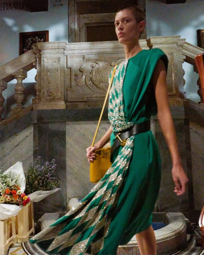 Lil Howard for Versace at Paris Fashion Week.